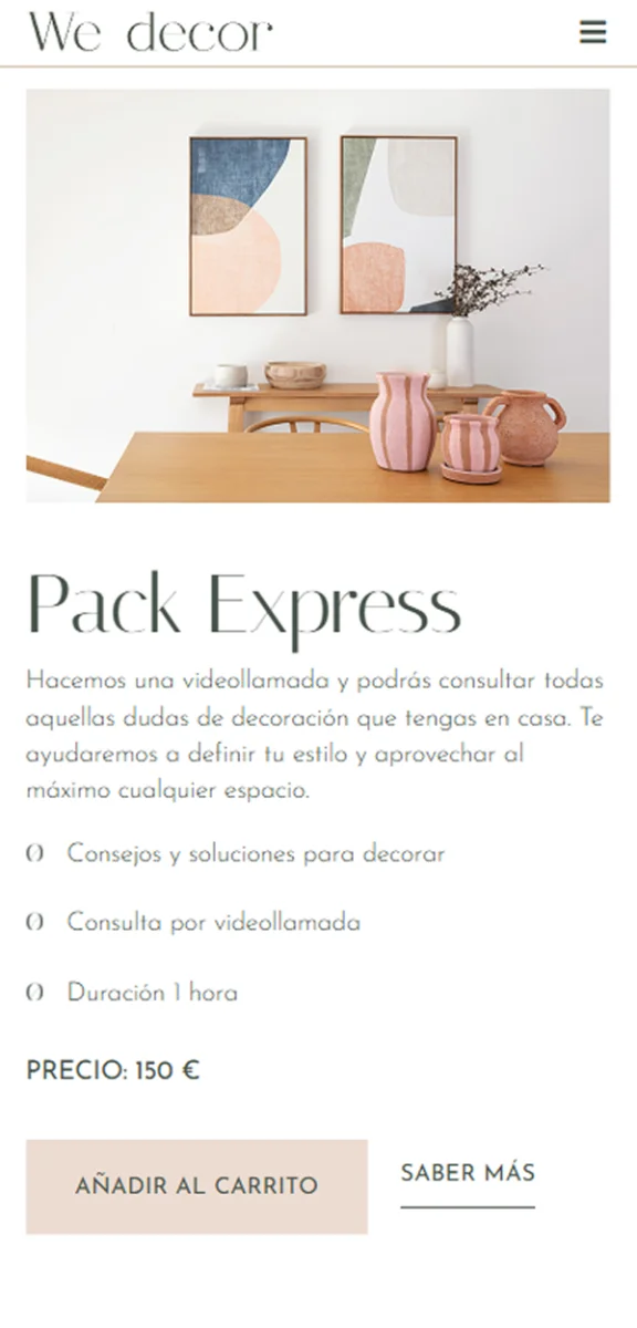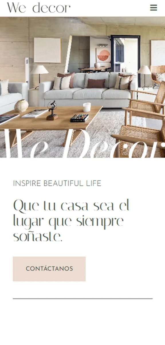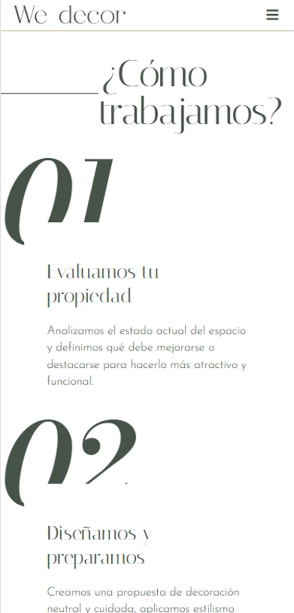 We Decor es un estudio de interiorismo y decoración que crea espacios personalizados con un enfoque contemporáneo, elegante y funcional. Realizamos una web de diseño contemporáneo lleno de carácter.
